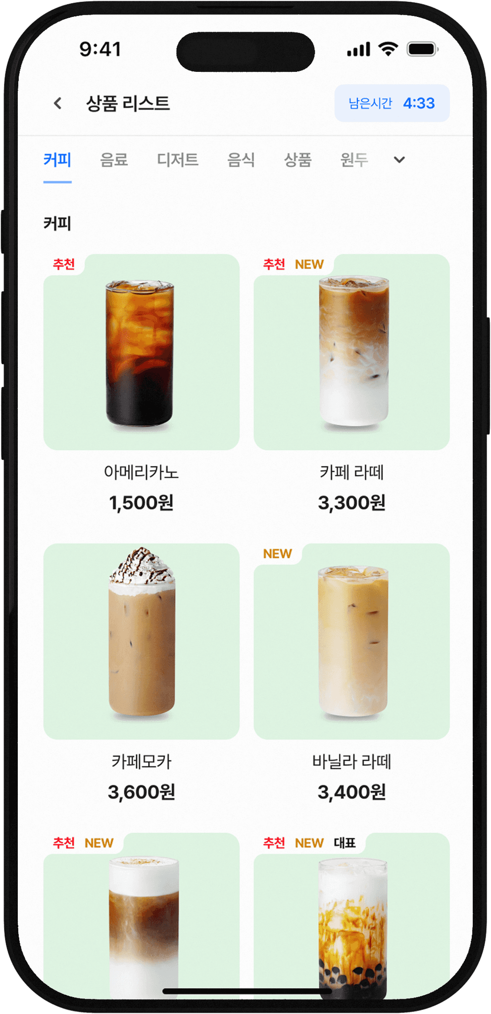 메뉴를 주문할 수 있는 화면이 나와요